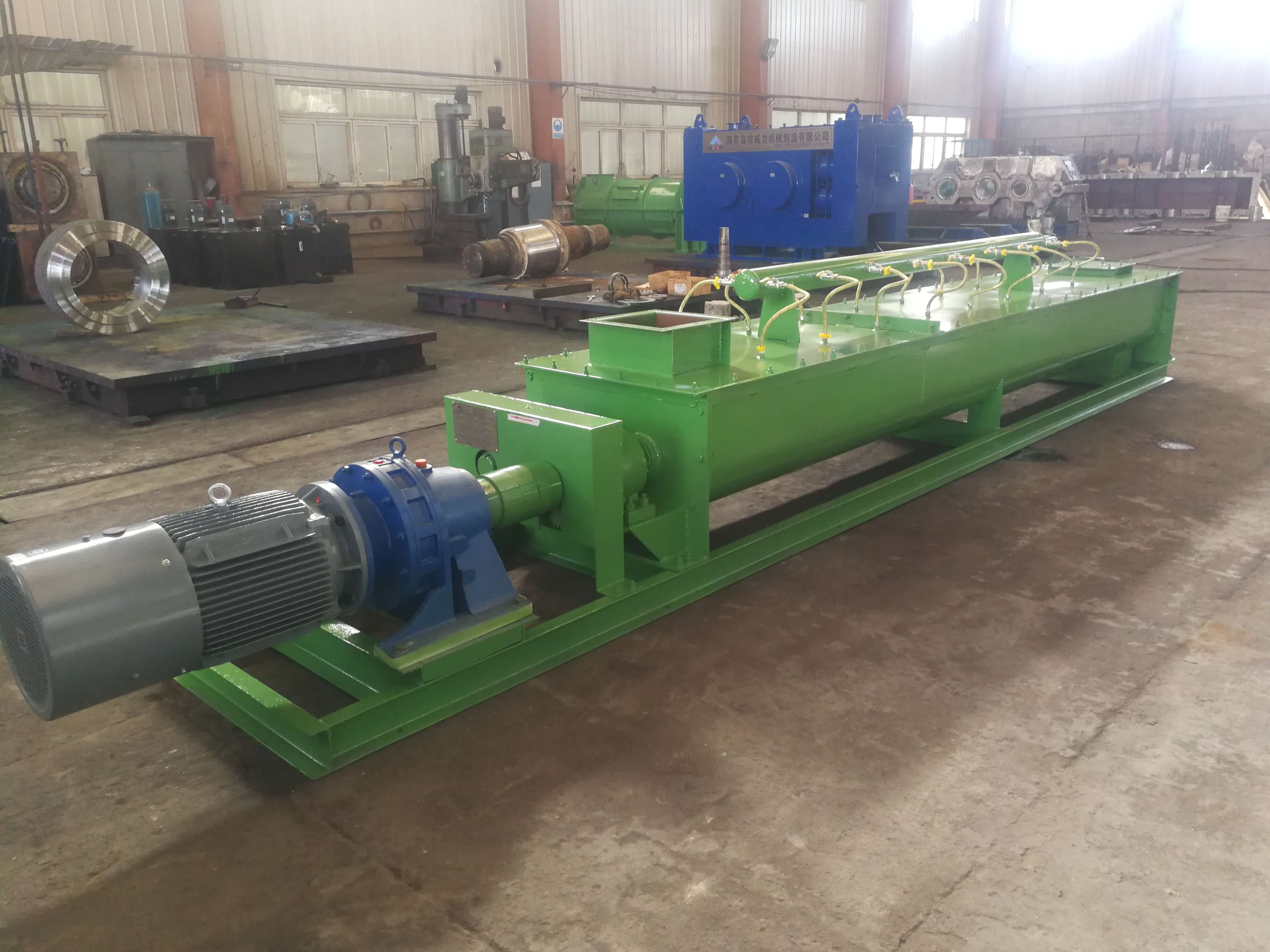 是由一個(gè)水平旋轉(zhuǎn)的容器和旋轉(zhuǎn)的立式攪拌葉片等組成,成型料攪拌時(shí),容器向左轉(zhuǎn),葉片向右轉(zhuǎn),由于逆流的作用,成型料各顆粒間運(yùn)動(dòng)方向交叉,互相接觸的機(jī)會(huì)增多,逆流混料機(jī)對料的擠壓力小,發(fā)熱量低,攪拌效率高,混料較為均勻。