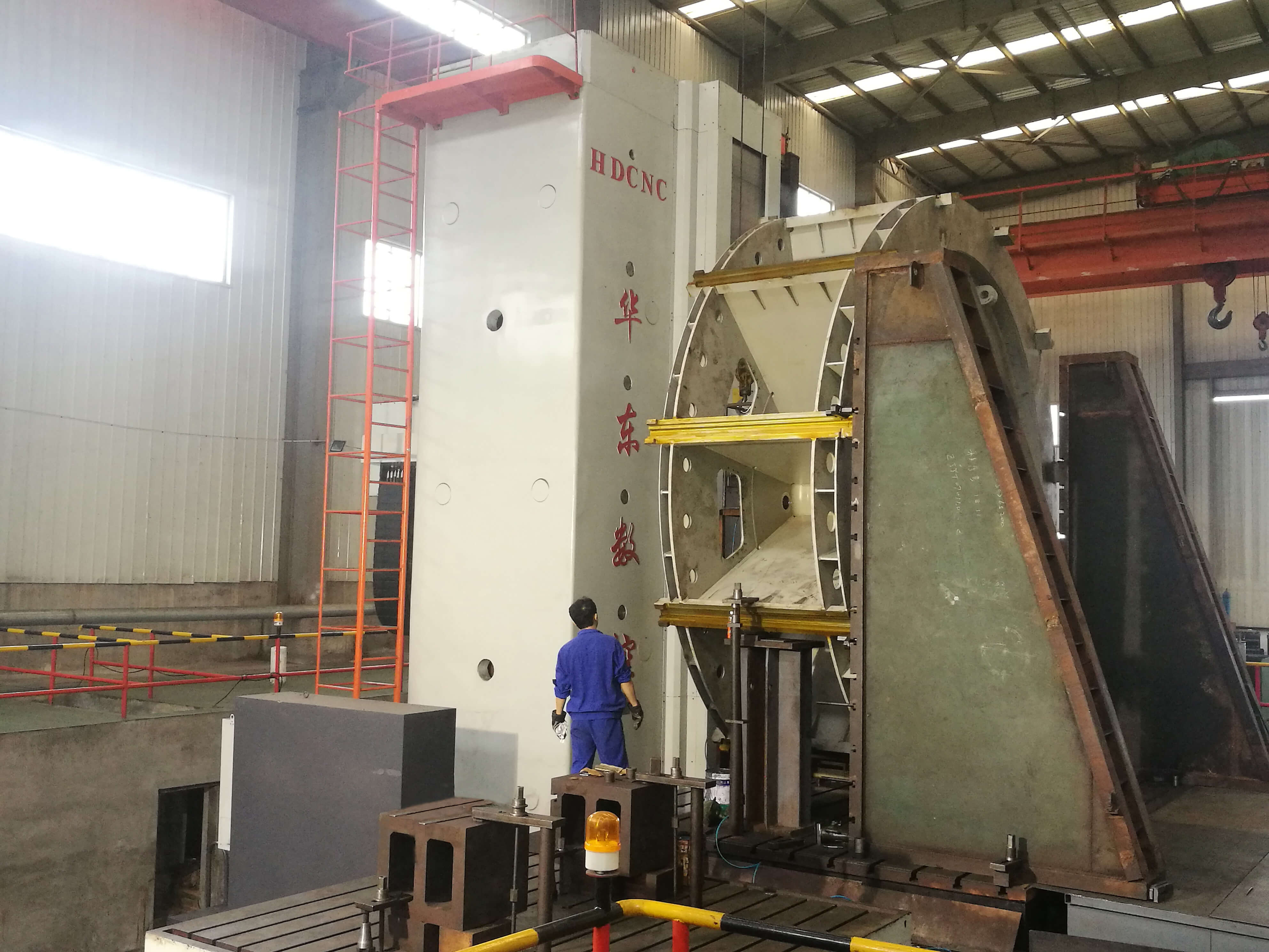 總建筑面積8290平方米,50t吊車2臺(tái),20t吊車1臺(tái),10t吊車5臺(tái)。擁有冷加工設(shè)備68臺(tái)套,包括TK6920-120-50重型數(shù)控落地銑鏜床,HC1200A臥式數(shù)控加工心,CKD61210/5000mm數(shù)控臥式車銑專機(jī)1臺(tái);12m×2.5m重型刨銑磨床1臺(tái);?200落地鏜床1臺(tái);TPX6113鏜床1臺(tái);T6111鏜床1臺(tái);立式車床4.0米、2.5米、1.25米、0.8米等10臺(tái);CAK系列數(shù)控車床6臺(tái)套;CW61100普車3臺(tái);CW6280B普車3臺(tái);滾齒機(jī)、插齒機(jī)、線切割、平面磨床等;